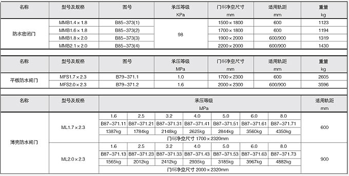 防水密閉門技術(shù)參數(shù)